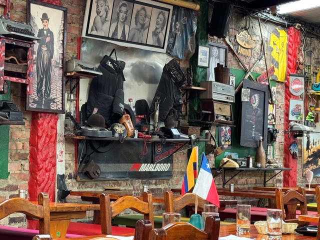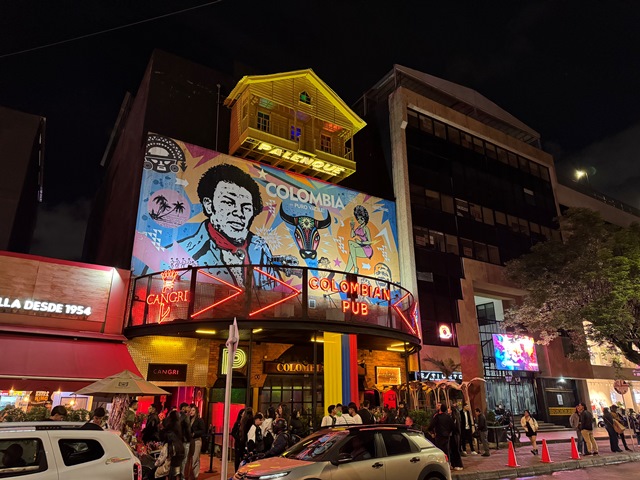 Son famosos los bares como El mono bandido, donde nos tomamos un cocktail, y para comer el popular Andrés carne de Res que ya visitamos en Cartagena de Indias, por lo que no fuimos a este de Bogotá.