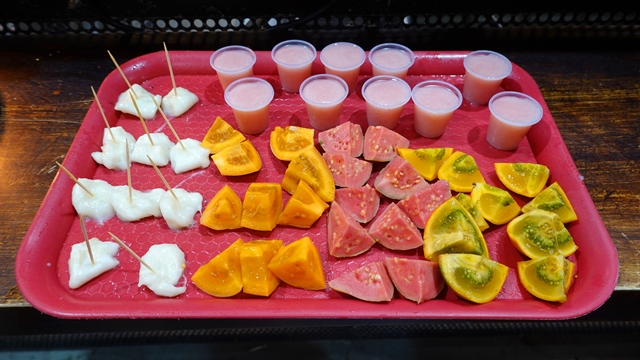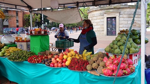 Una vez llegamos a la plaza del Mercado de La Concordia, nos ofrecieron una degustación de frutas exóticas colombianas, en nuestro caso las conocíamos de nuestra estancia en Cartagena de Indias, pero por Barcelona la gran mayoría no las hemos visto nunca, en cambio las dominicanas si las conocían aunque con otros nombres