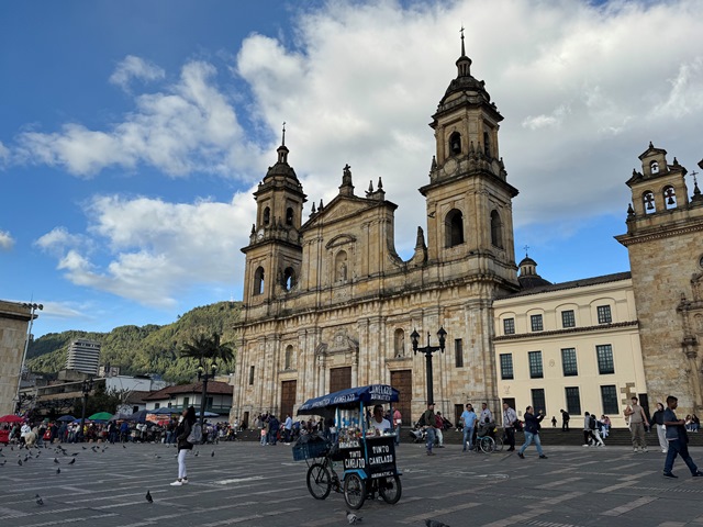 Bajamos por la calle 11 hacia la Plaza Bolívar, una inmensa plaza flanqueada por monumentales edificios como el Capitolio Nacional de Colombia que es la sede del Congreso de la República.