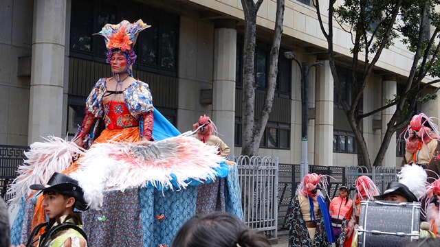Nuestra visita a la ciudad coincidió con un desfile en conmemoración al 487 aniversario de Bogotá, pudiendo disfrutar del gran desfile de comparsas por la carrera Séptima, dicho evento cumple 30 años, participando más de 1.000 músicos, bailarines y artistas de 15 localidades de la ciudad.
