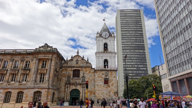 Pasamos frente a la Plaza Santander, donde se encuentran el Museo del Oro y el Banco de la República.