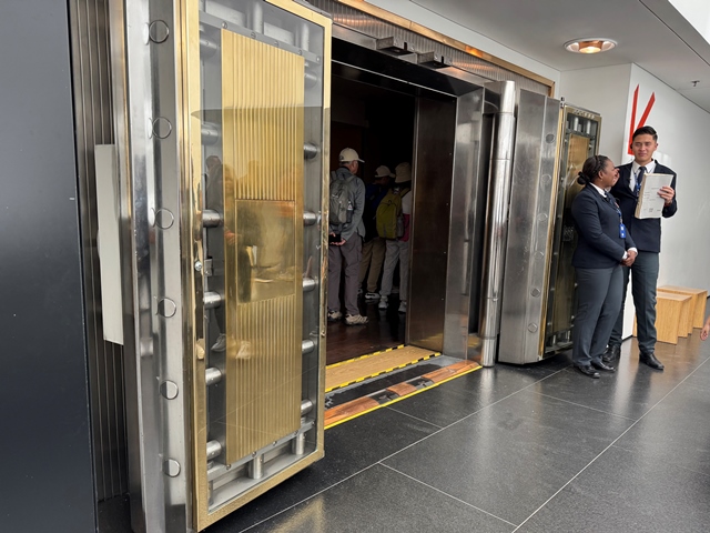 Impresiona entrar en la sala que está protegida con una inmensa puerta de acero con cerradura de caja fuerte donde se encuentran las piezas más valiosas del museo.