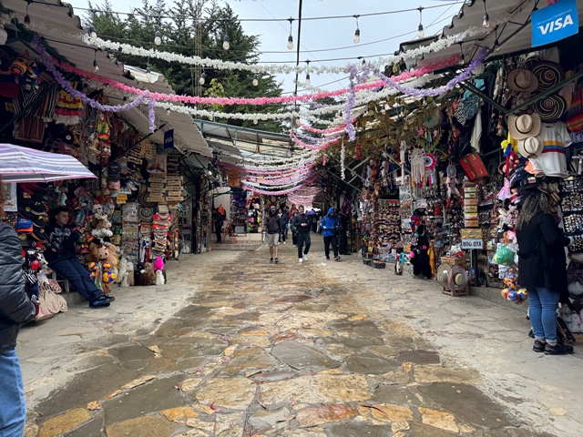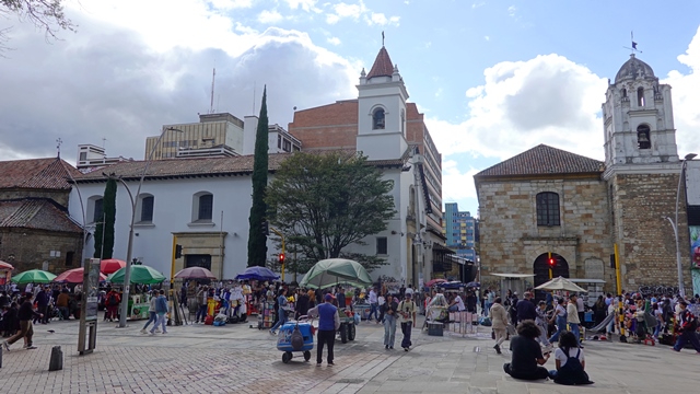 Bajamos andando desde la estación del funicular por la avenida Jiménez de Quesada, hasta la Plazoleta del Rosario donde se encuentra el mercado callejero de esmeraldas, salen más baratas pero sin ninguna garantía de autenticidad.