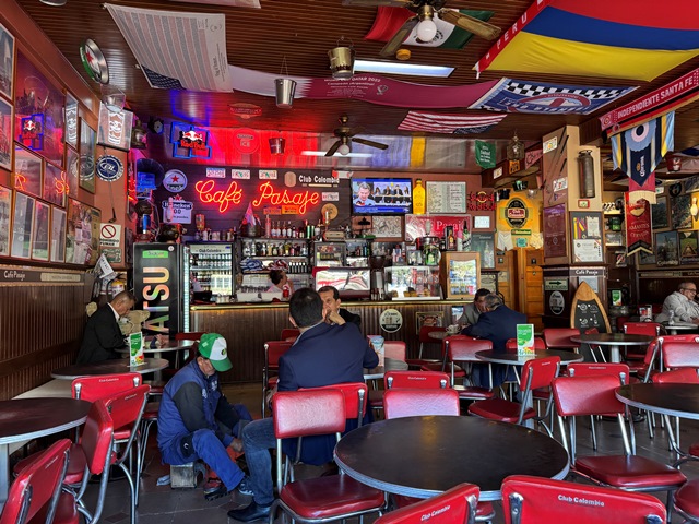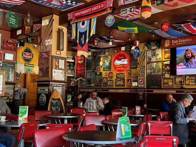 Nos tomamos un café en el emblemático Café Pasaje, un lugar que desde 1936 es punto de encuentro y tertulia de políticos, artistas, vendedores de esmeraldas y bohemios, uno de los imprescindibles en cualquier visita a Bogotá.