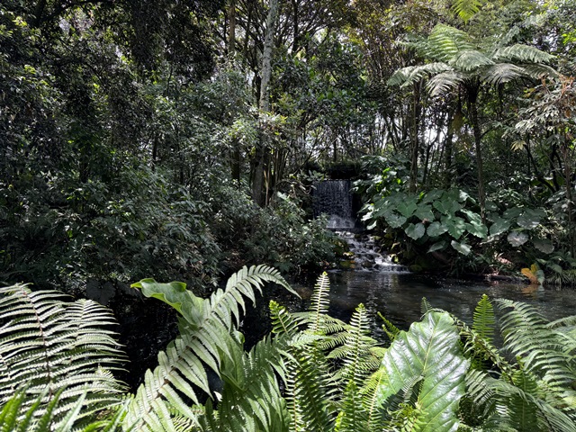 Hicimos la visita circular pasando por el lago principal, la rosaleda, la zona de orquídeas, el Domo Herbal de Plantas Medicinales y el jardín de los helechos con la cascada. Un agradable paseo para concluir nuestro viaje.