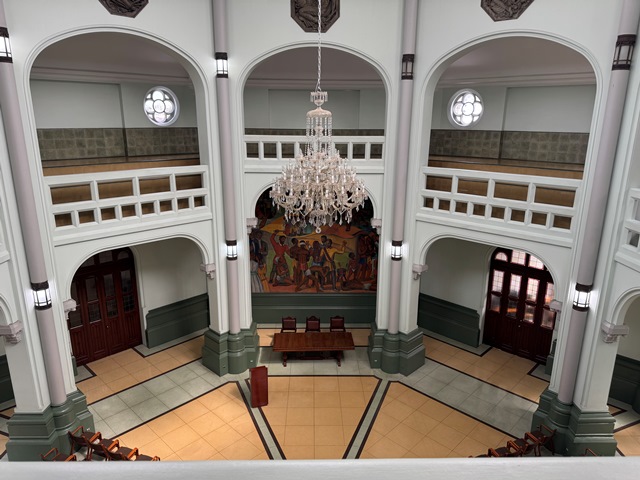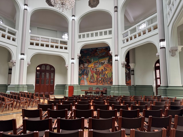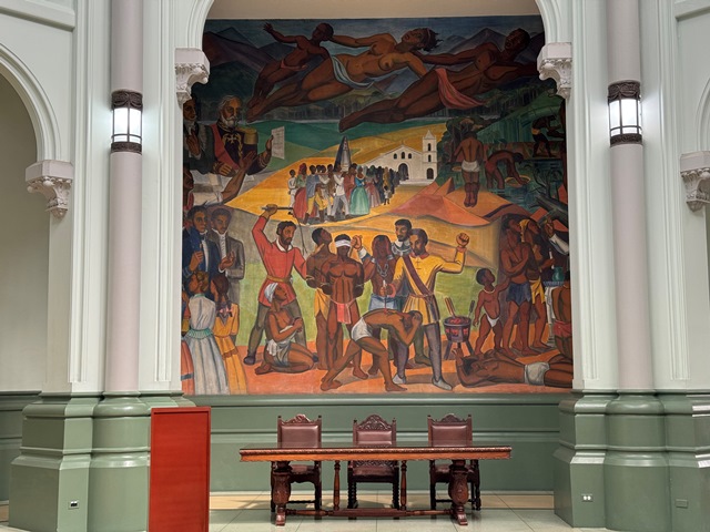 En su interior destaca el mural realizado en 1952 por el maestro Ignacio Gómez Jaramillo, un trabajo que le llevó tres años poniéndole el nombre de “La liberación de los esclavos” .