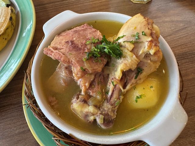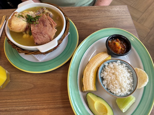 Para almorzar, elegimos este restaurante tradicional situado en la plaza central del Pueblito Paisa, un lugar acogedor donde sirven una comida deliciosa.