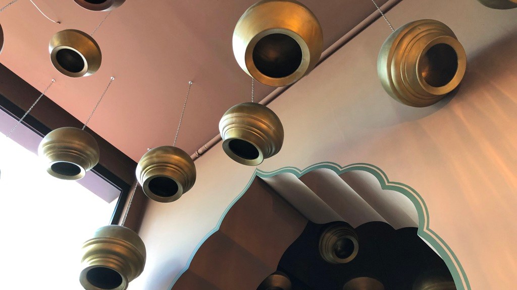 En nuestros habituales paseos por el barrio de la Barceloneta, coincidió con la hora de comer, así que buscamos en la app de el tenedor y nos encontramos con este restaurante de comida hindú con una decoración inspirada en el arte tradicional de la India.
